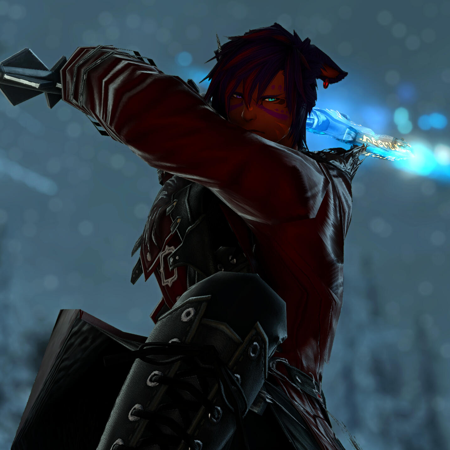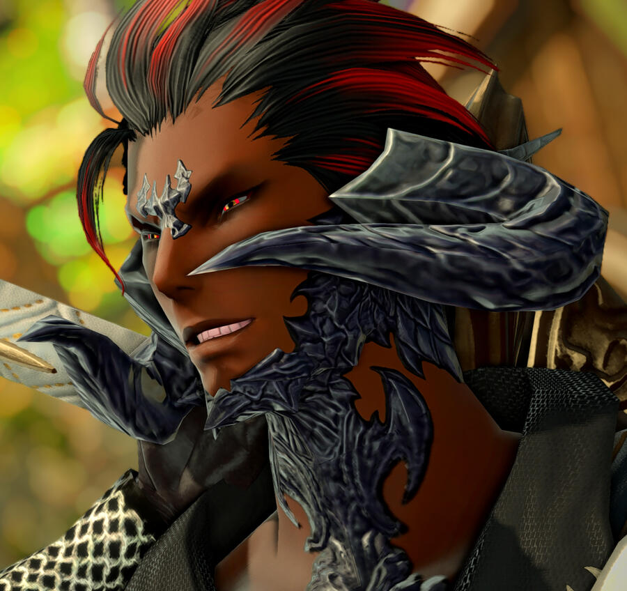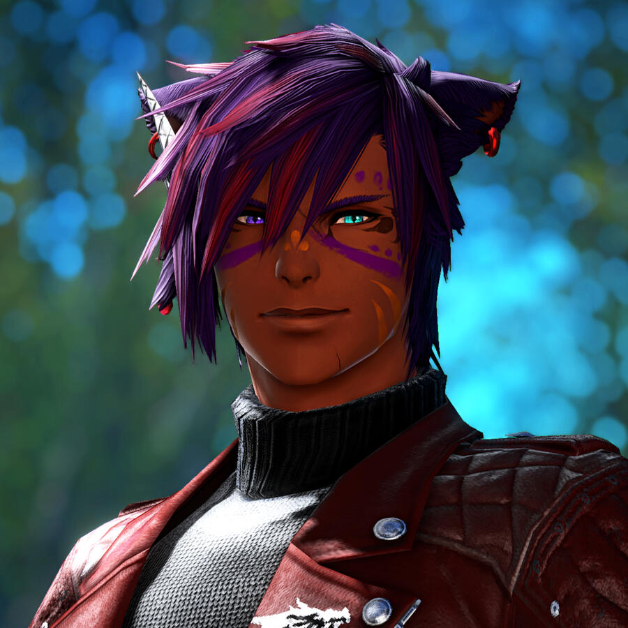 A child of the The Black Shroud born of both Keeper and Seeker blood. Though he spent much of his early years under the Twelveswood's boughs, upon reaching adolescence he left his clan and made for Gridania.A chance encounter with a retired Ishgardian knight and his Au Ra apprentice introduced Zhyk to adventuring and mercenary work, a path he would make his life's calling.Nearly half a decade ago, an expedition into Dzemael Darkhold went awry, splintering the found family he had. A sellsword he remains, though he walks alone, accompanied only by the ethereal sapphire flames at his fingertips.